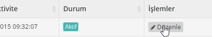 3- Karşımıza daha önce oluşturulmuş olan yönetici hesapları listelenecektir. İşlem yapacağınız kullanıcının sağ sütununde yer alan "Düzenle" butonuna basınız.