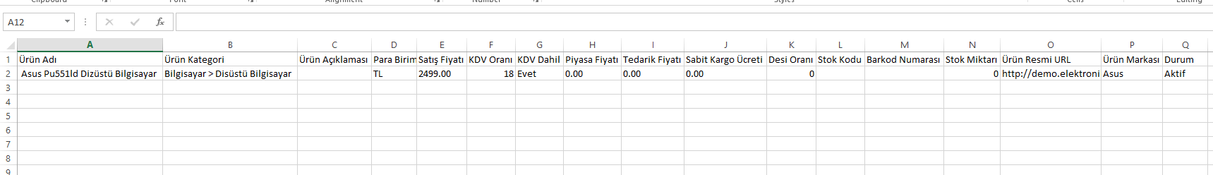 Excel formatımızı oluşturduktan sonra Eticaret sitemiz yüklemek için aşağıdaki adımları izleyeceğiz :