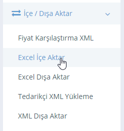 2 - Sol menüden İçe / Dışa Aktar > Excek İçe Aktar linkine tıklayın