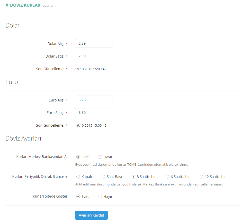 Site içindeki döviz kurlarını nasıl ayarlarım?