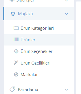 2- Sol menüden Mağazalar > Ürünler linkine tıklayın.