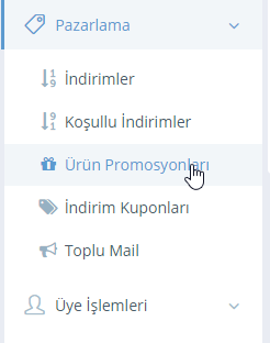 2 - Sol menüden Pazarlama > Ürün Promosyonları linkine tıklayın