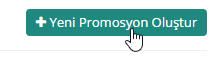 3 - Karşımıza daha önce oluşturduğumuz promosyonlar gelecektir biz sağ üst alanda yer alan "Yeni Promosyon Oluştur" butonuna basarak işlemimize devam edeceğiz